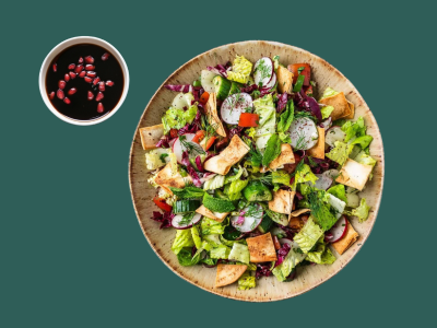 HomeGathering SaladGathering SaladDescriptionEnough for 6 PersonSalads * Caesar SaladFatoosh SaladTaboola SaladNachos saladArugula salad with pomegranate and walnutsPotato fattah
